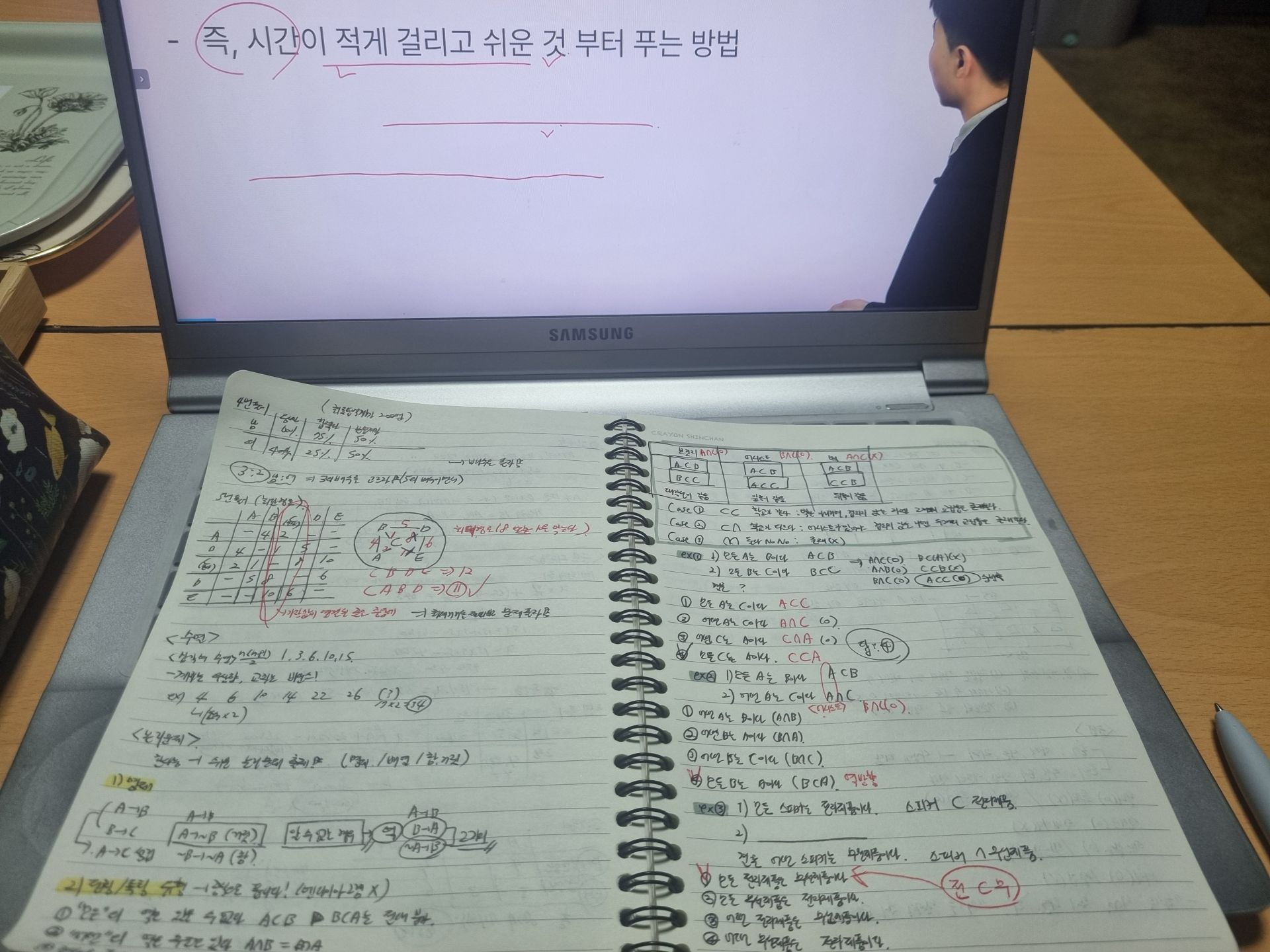 수웅쌤 강의의 가장 큰 장점은 첫째, 실전적인 시간 단축 비법을 전수해주신다는 것입니다. 정석적인 방정식을 써서 길게 계산하는 방식이 아니라 대입법, 가감법, ⭐️몰아주기, 간소화⭐️등 강의를 들은 사람만 아는 꿀팁들을 가르쳐주십니다. 특히 몰아주기와 간소화 기법을 체화하면 복잡한 수치도 암산으로 처리할 수 있을 만큼 계산이 단순해집니다.