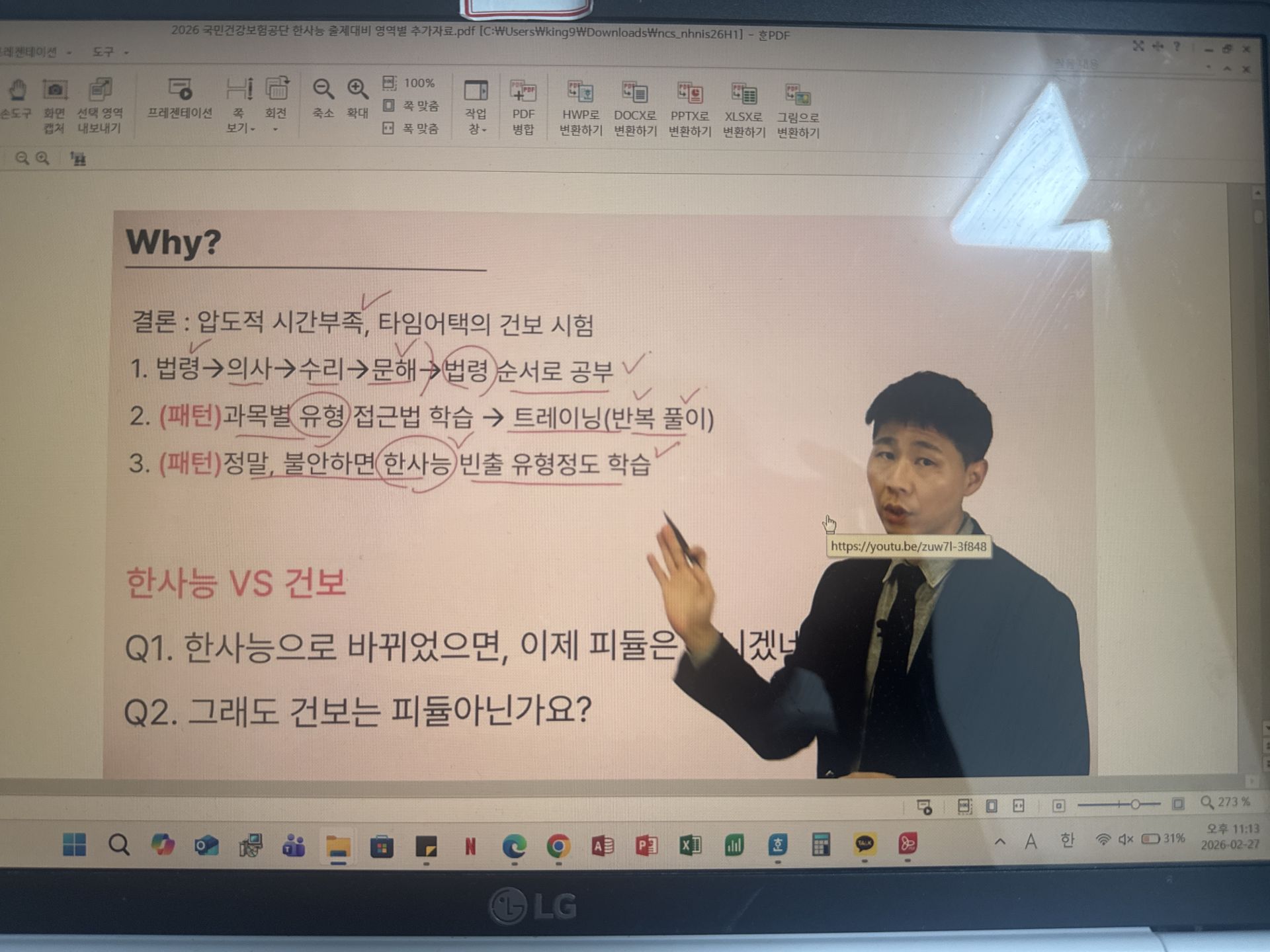 한사능으로 바뀌면서 걱정이 많았는데 강의 덕분에 잘 준비할 수 있을 것 같습니다! 2주차에는 건보 봉모책이랑 같이 병행하면서 수업 듣겠습니당!