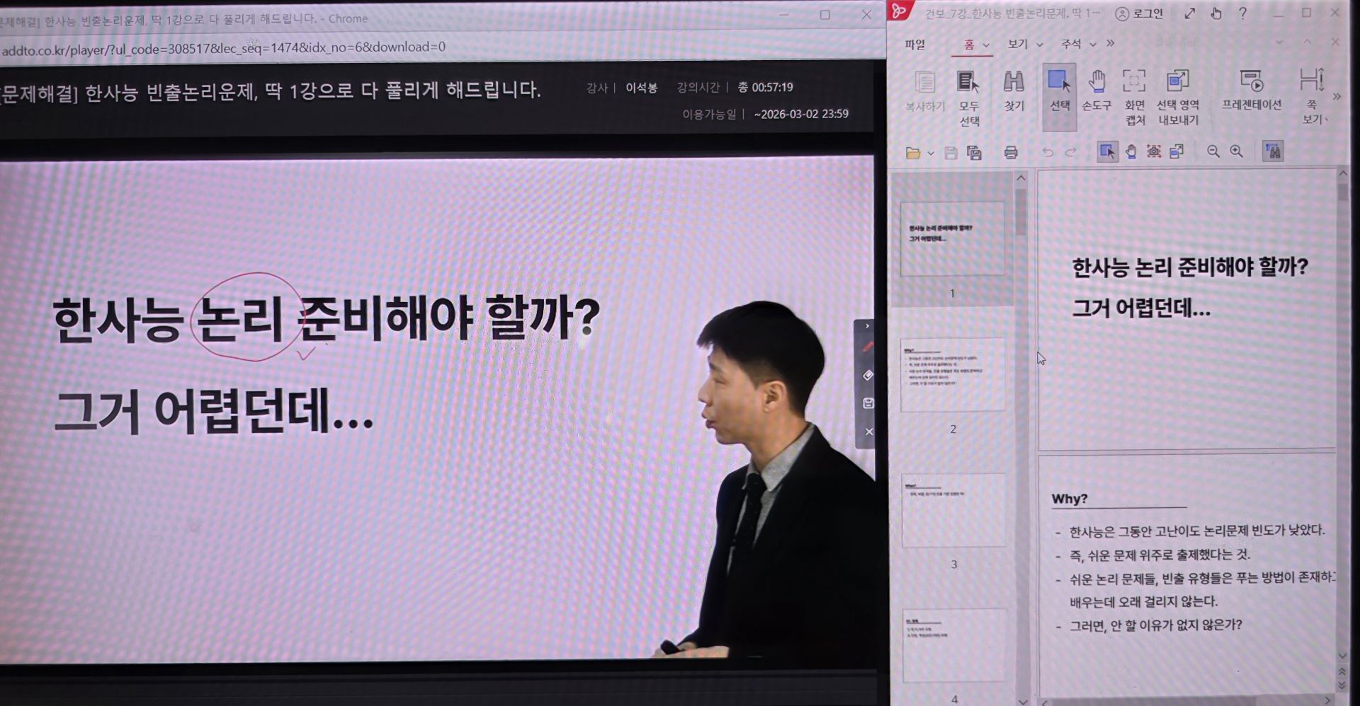 이석봉 선생님 강의를 통해 한사능 대표유형을 학습할 수 있어서 좋았습니다.