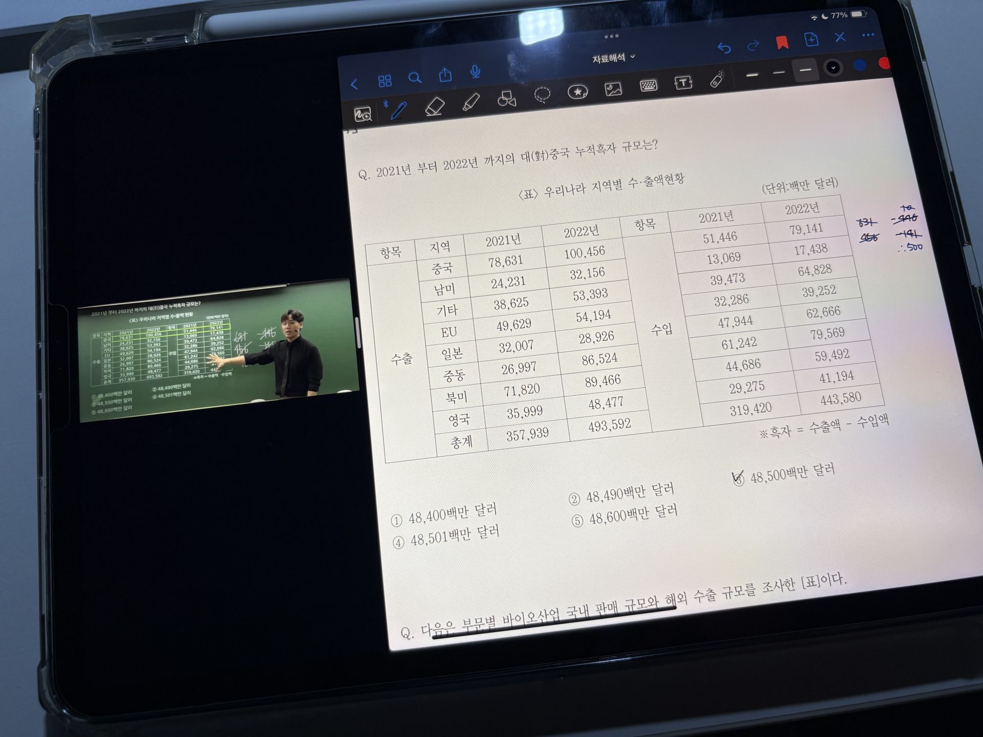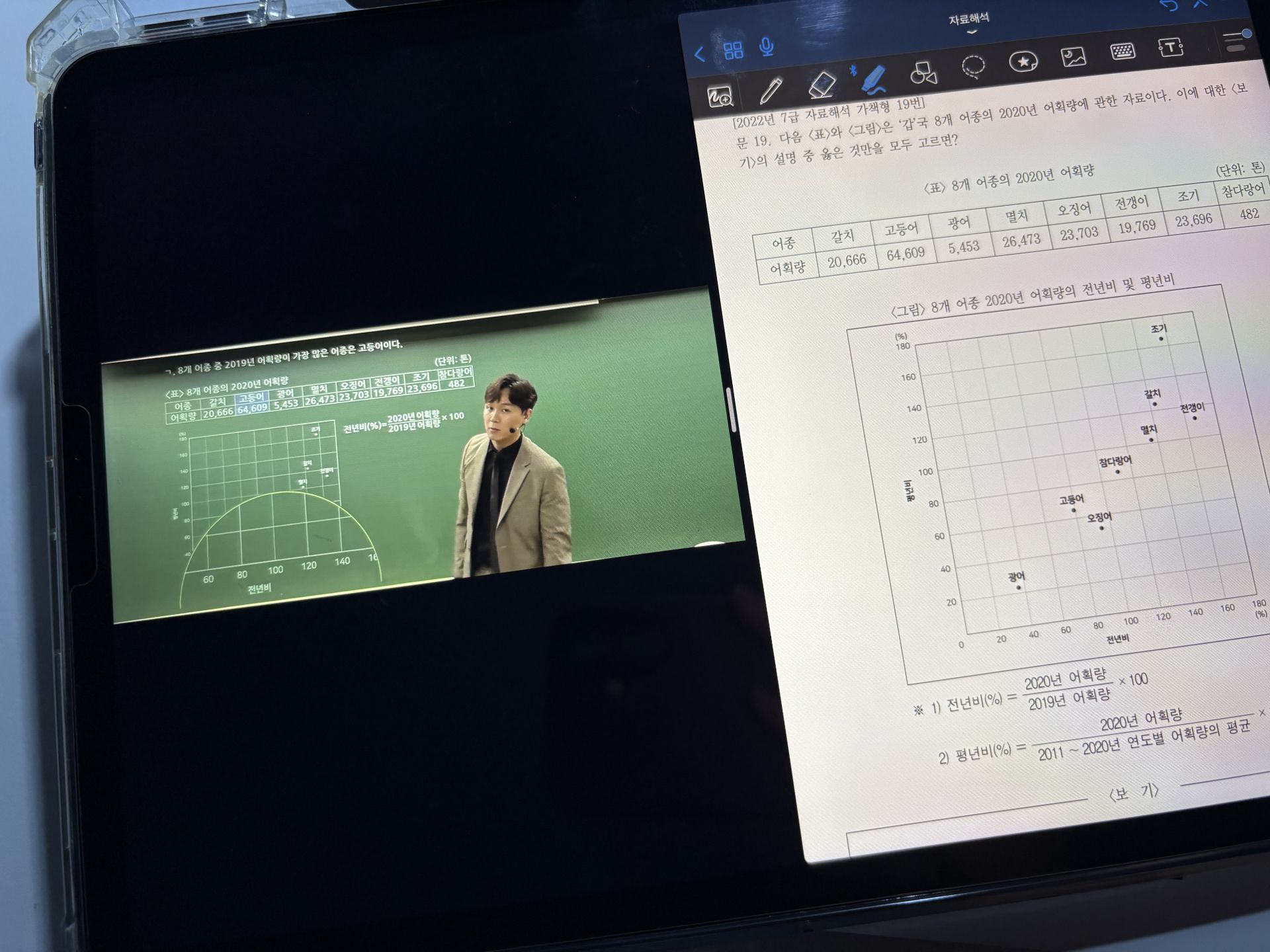 특히 액세스는 처음 들어서 처음에 따라가기 너무 힘든 거에요. 그래서 교재를 하나는 필기 있는 버전, 하나는 필기 없는 버전으로 해서 처음에 할 때는 필기 마구마구해서 밖에서도 쉽게 볼 수 있게 메모를 했구요. 하나는 필기 없는 버전으로 해서 실전처럼 연습할 때 패드 세로로 세운 후에 시험장처럼 연습했습니다!