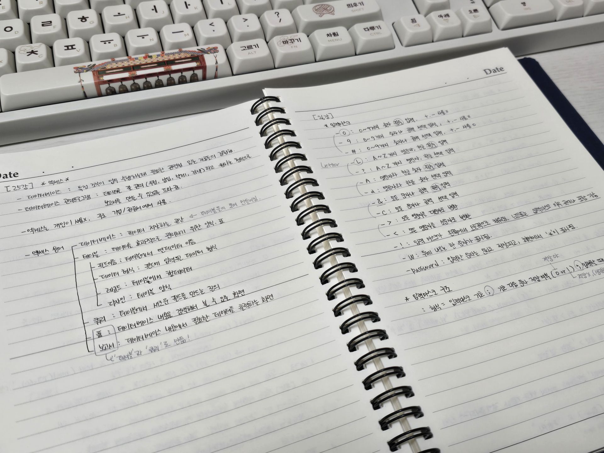 특히 액세스는 처음 들어서 처음에 따라가기 너무 힘든 거에요. 그래서 교재를 하나는 필기 있는 버전, 하나는 필기 없는 버전으로 해서 처음에 할 때는 필기 마구마구해서 밖에서도 쉽게 볼 수 있게 메모를 했구요. 하나는 필기 없는 버전으로 해서 실전처럼 연습할 때 패드 세로로 세운 후에 시험장처럼 연습했습니다!