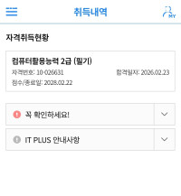 URL복사 링크가 복사되었습니다.kimm**** / 2026-01-11 컴활 2급 필기 실기 자격증 수강후기