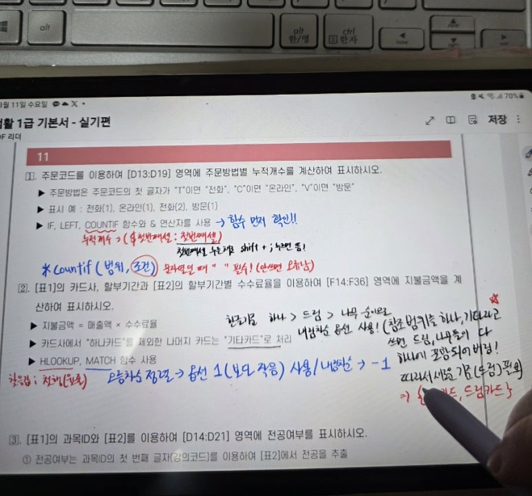 확실히 실기 문제를 먼저 풀어보고 필기를 시작하니까 엑셀 이해도가 올라갔고 워크시트 관련 문제는 쉬웠던거같아요.