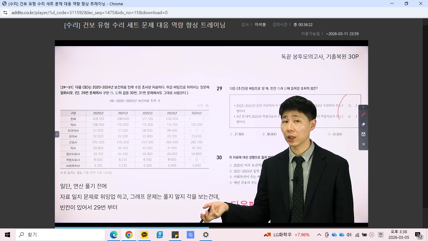 교재 또한 인강 내용과 잘 연계되어 있어 복습하기에 매우 좋았습니다. 유형별로 정리가 되어 있어 강의를 들은 뒤 바로 해당 유형 문제를 풀어볼 수 있었고, 풀이 과정을 다시 확인하며 스스로 부족한 부분을 점검하기에 적합했습니다. 저는 강의를 수강한 후 교재 문제를 풀면서, 강의에서 강조한 포인트를 체크하고 풀이 시간을 함께 기록하는 방식으로 공부하고 있습니다. 이를 통해 불필요하게 시간이 오래 걸리는 지점을 스스로 확인할 수 있었습니다.