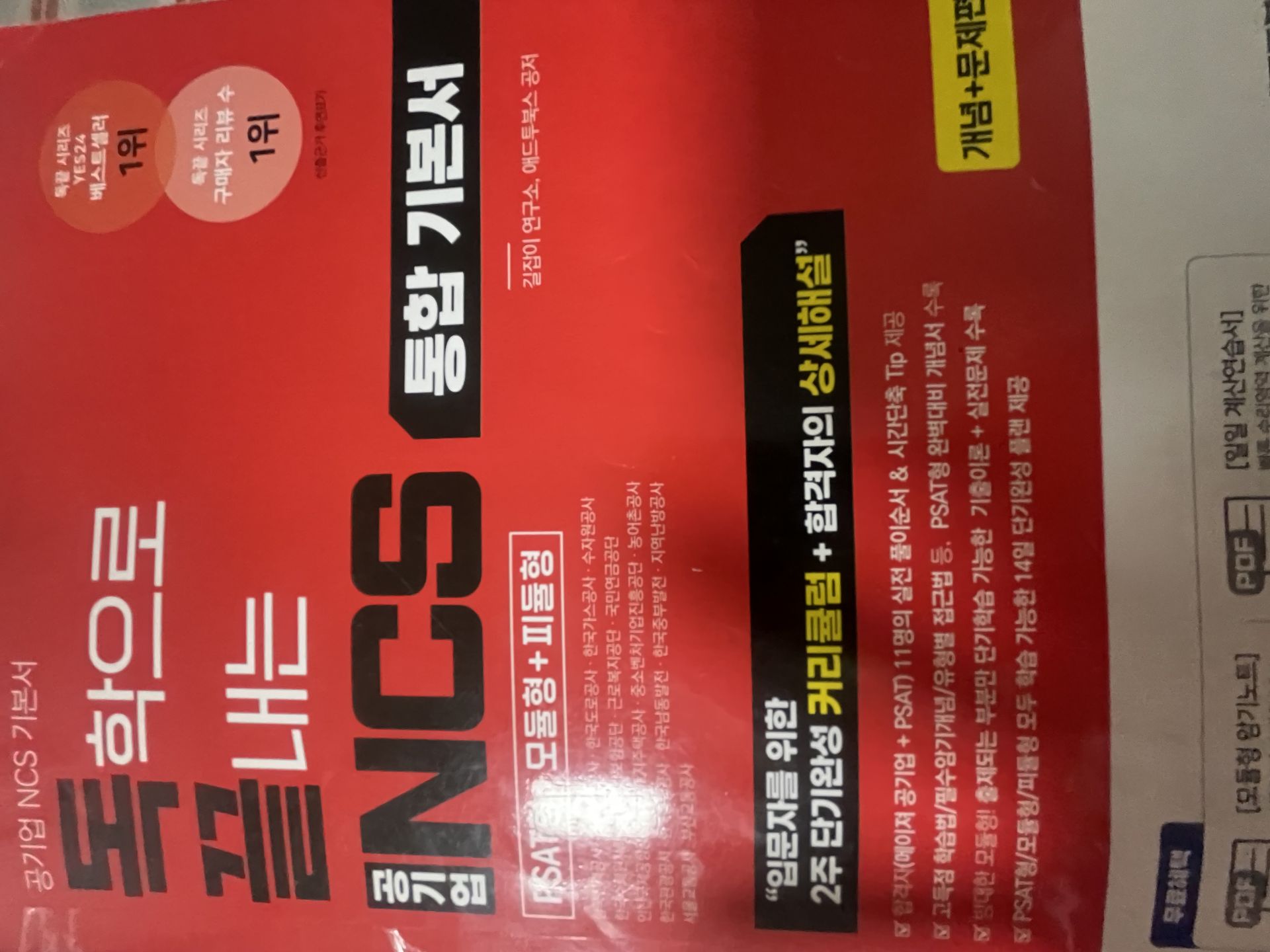 그래서 우선 가장 많이 사용하시는 것 같은 독끝 NCS 통합기본서를 구매해 독학으로 1회독을 해보았습니다.