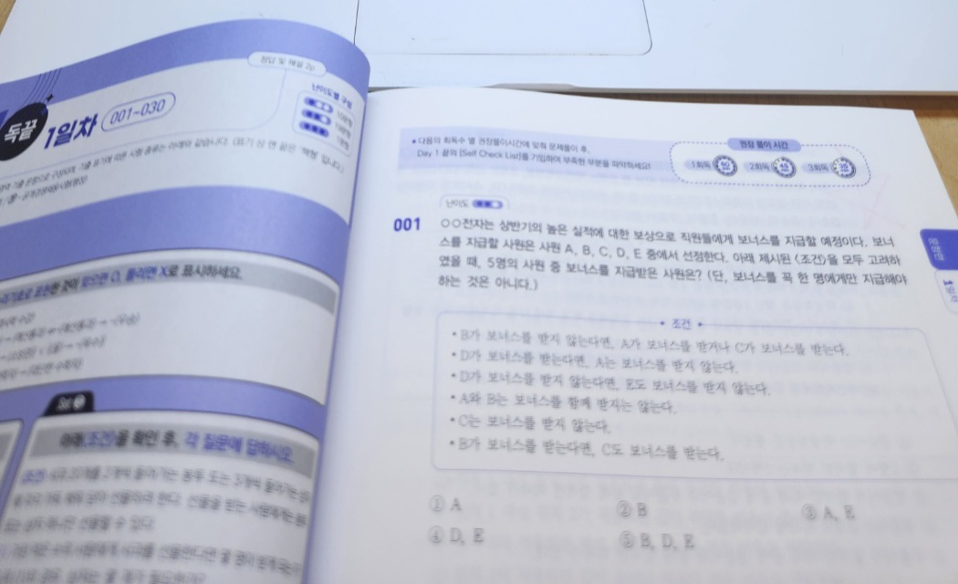 교재 구성도 실전 대비에 좋았습니다. 유형별로 포인트가 명확해서 복습할 때 “내가 어디서 막히는지” 체크가 쉽고, 강의 듣고 바로 교재로 반복하면 풀이 속도가 조금씩 올라가는 게 체감됩니다. 아직은 어렵게 느껴지는 부분도 있지만, 이번 주에 배운 유형들은 오답노트로 패턴 정리 → 같은 유형 2~3회 반복 → 시간 재면서 재풀이 방식으로 꾸준히 늘려갈 계획입니다.