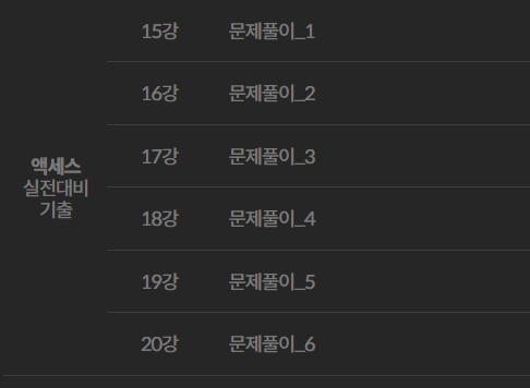 안녕하세요! 저는 완전 문과, 전공도 사회과학대, 엑셀은 입력만 할 수 있는 정도...의 컴맹입니다. (액세스 당연히 처음 들어봤구요 ㅋㅋㅋㅋㅋ) 저와 비슷한 사람이 있을 것이라 믿으며 본격적으로 남겨보겠습니다. 다른 인강회사에서 올리는 맛보기 강의들을 전부 들으면서 비교했습니다.