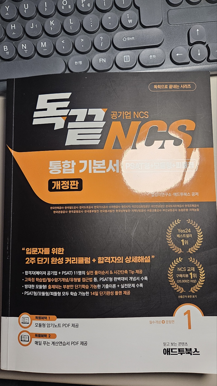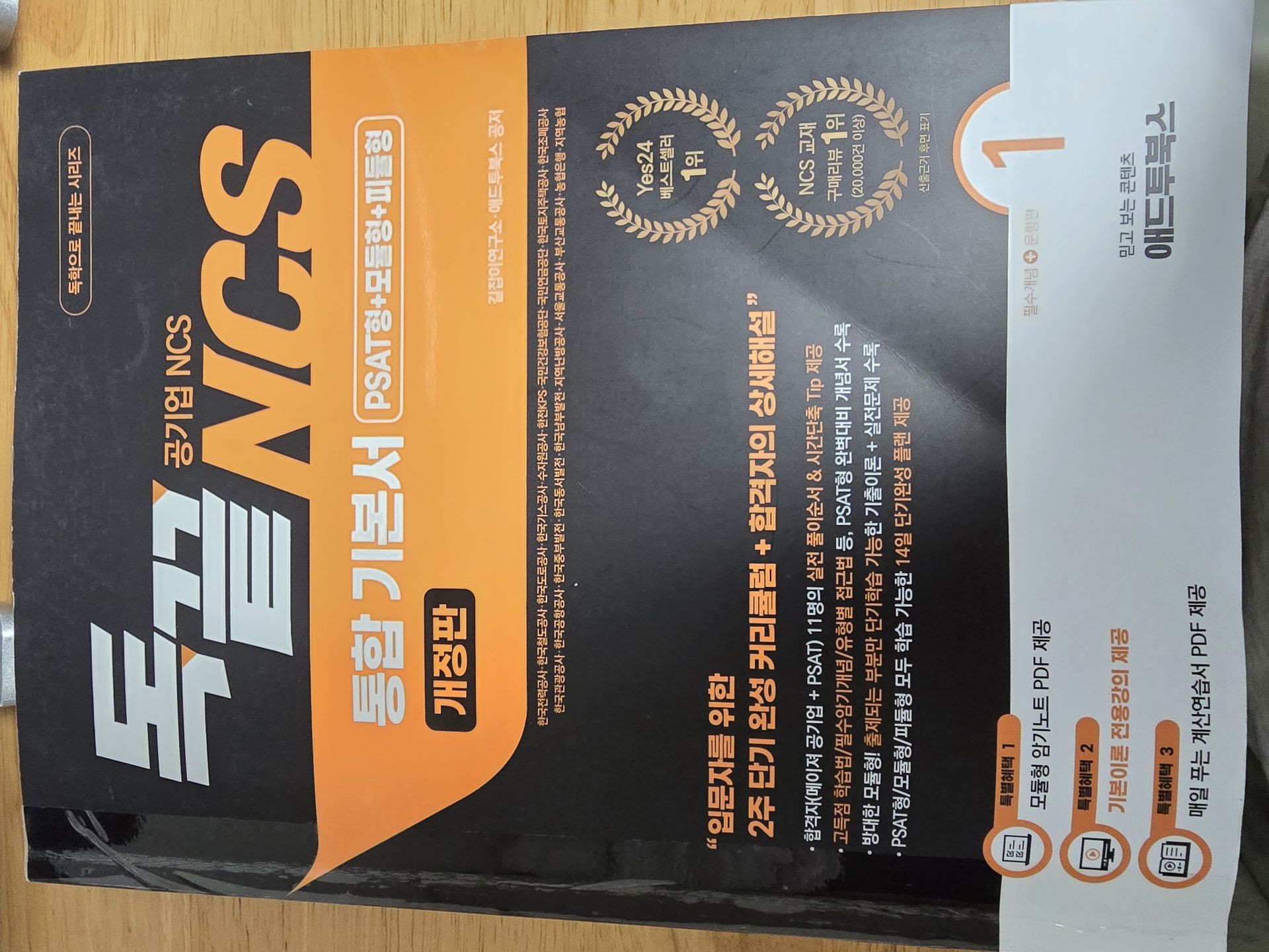 - kaka**** / 2025-04-18 BEST #초보자 추천 #학습량이 적당해요 +4 일단 NCS 초보자로서 기본 인강을 들어볼 필요가 있겠다고 느꼈고, 애드투 (박수웅·길자은 독끝 NCS 통합 기본서 이론+문풀(모듈편+피셋편)) 인강을 구매했습니다. 두 분이 파트별로 나누어 강의 진행해주십니다. NCS를 처음 접하는 입장에선 박수웅 강사님의 계산 팁들이 매우 유익했습니다. 500제 인강도 들어보고 싶을 정도로요.. 특히 응용수리가 좋습니다. 속력문제, 소금물문제, 일률문제뿐 아니라 배수문제나 몰아주기 방식 등도 알려주셔서 도움이 많이 됩니다. 교재는 고등학교 수학의 정석 느낌이 납니다. 예제 문제 하나하나 잘 되어있고 기본문제+고난도문제까지 풀이가 정말 꼼꼼하게 적혀있습니다. 솔직히 교재가 진짜 좋은 것 같습니다.. 전에 타 교재로 한 일주일 끄적여 볼 기회가 있었는데 그건 답지에 풀이 1줄 끝인 문제가 많았거든요. 여긴 그런 문제가 아예 없습니다. 풀이가 기본 반 페이지예요. 물론 수리나 자원관리, 문제해결은 따로 500제 더 풀어봐야 풀이 속도가 붙겠지만, 애드투 기본서가 시중 기본서 교재들 중 가장 이론이 자세한 교재인 듯 합니다. 기본서 문제풀이만 3회독 중이고 응용수리 500제도 풀기 시작했습니다. 문제를 더더더 빨리 풀 수 있게 되면 좋겠네요.