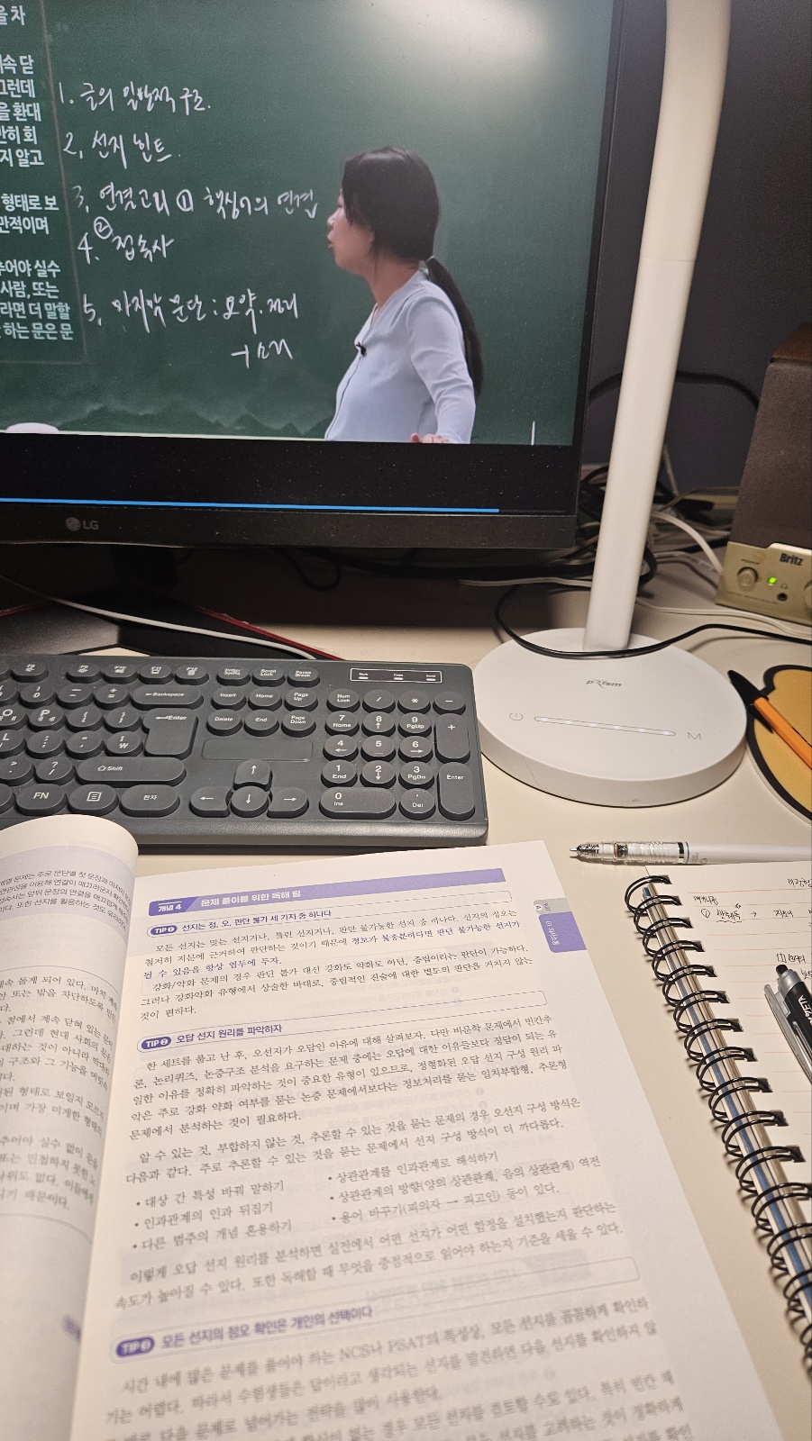 교재 구성도 실전 대비에 좋았습니다. 유형별로 포인트가 명확해서 복습할 때 “내가 어디서 막히는지” 체크가 쉽고, 강의 듣고 바로 교재로 반복하면 풀이 속도가 조금씩 올라가는 게 체감됩니다. 아직은 어렵게 느껴지는 부분도 있지만, 이번 주에 배운 유형들은 오답노트로 패턴 정리 → 같은 유형 2~3회 반복 → 시간 재면서 재풀이 방식으로 꾸준히 늘려갈 계획입니다.