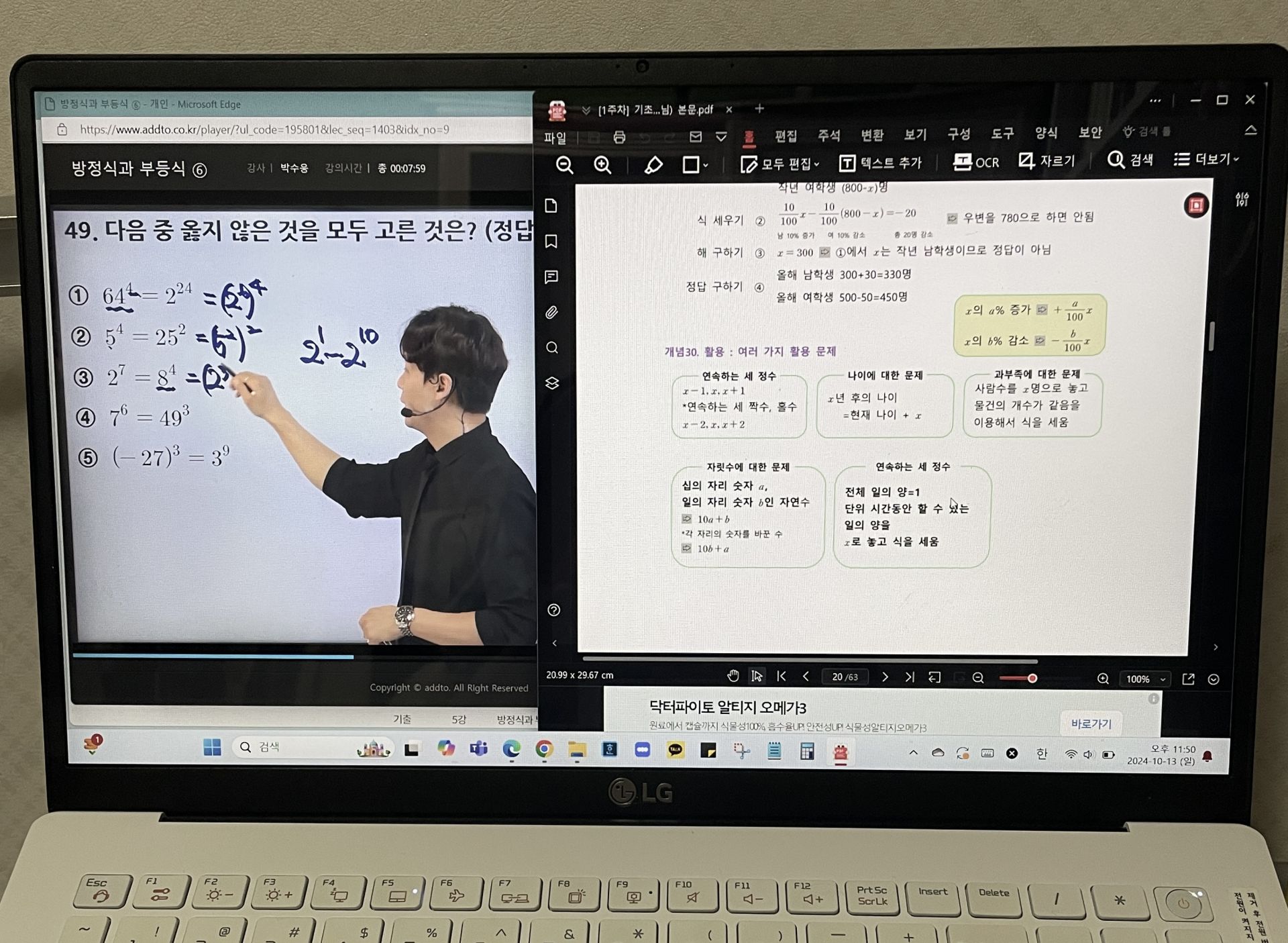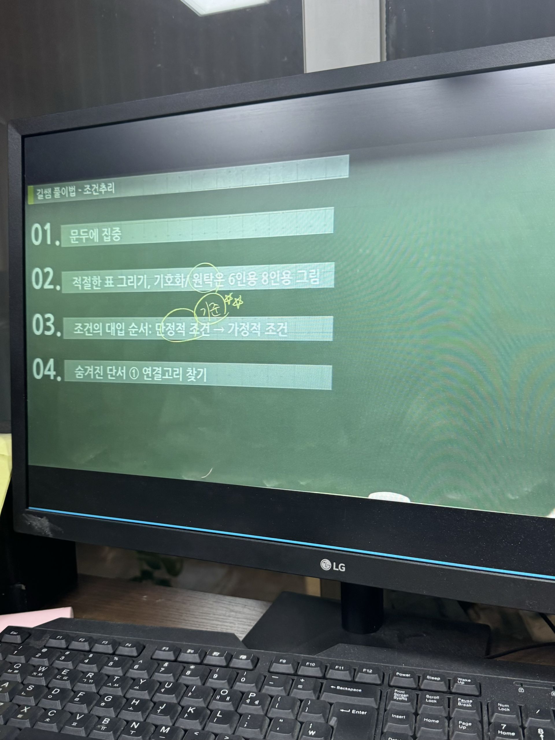 제가 평소에 풀던 방식과, 박수웅 강사님이 알려주신 풀이가 다소 상이해서 적용해서 푸는덴 아직 미흡하지만... 열심히 연습해서 그 방식에 익숙해진다면 훨씬 빨리 풀 수 있을 것 같다고 느꼈습니다.