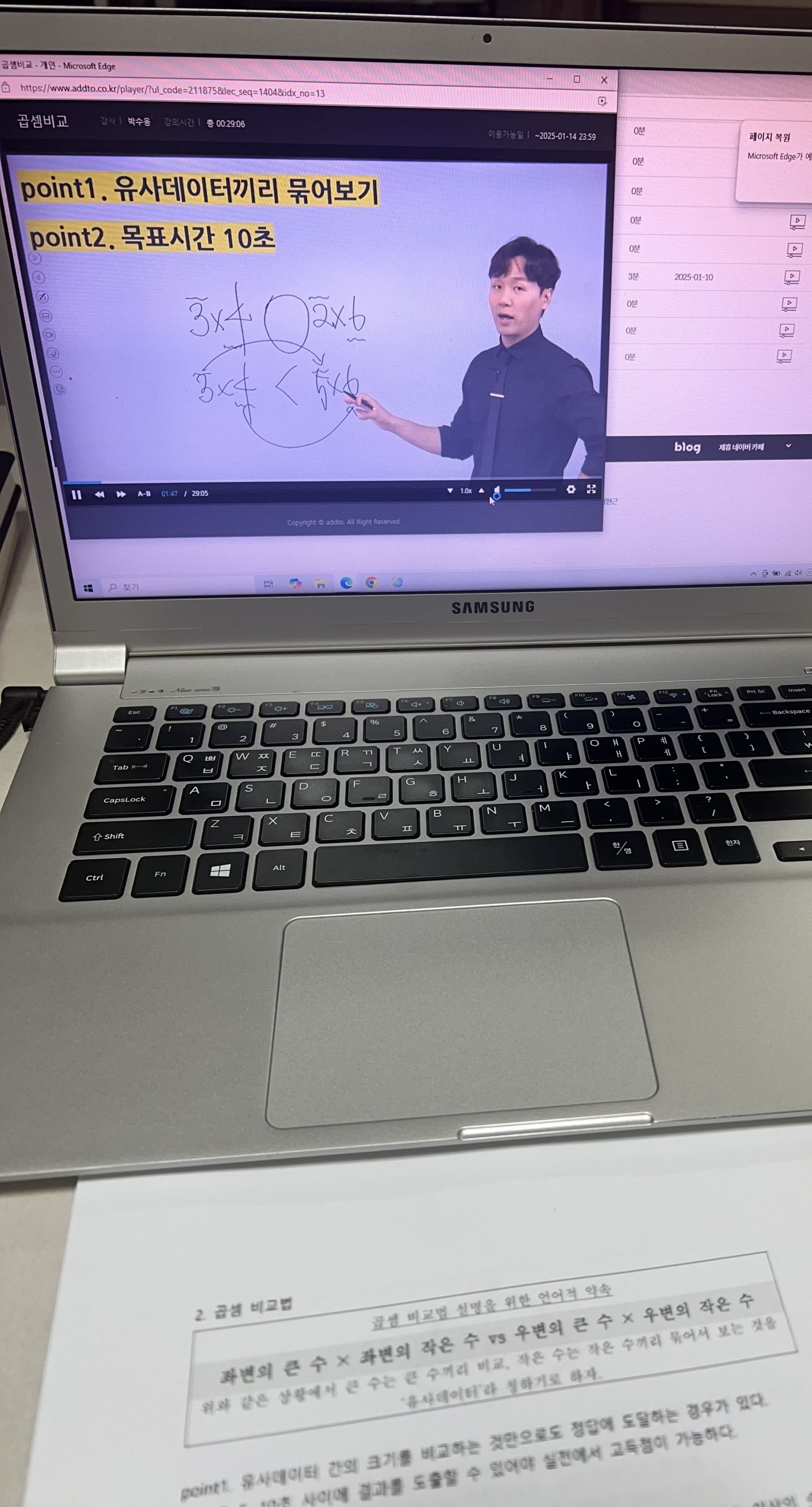 교재 구성도 실전 대비에 좋았습니다. 유형별로 포인트가 명확해서 복습할 때 “내가 어디서 막히는지” 체크가 쉽고, 강의 듣고 바로 교재로 반복하면 풀이 속도가 조금씩 올라가는 게 체감됩니다. 아직은 어렵게 느껴지는 부분도 있지만, 이번 주에 배운 유형들은 오답노트로 패턴 정리 → 같은 유형 2~3회 반복 → 시간 재면서 재풀이 방식으로 꾸준히 늘려갈 계획입니다.