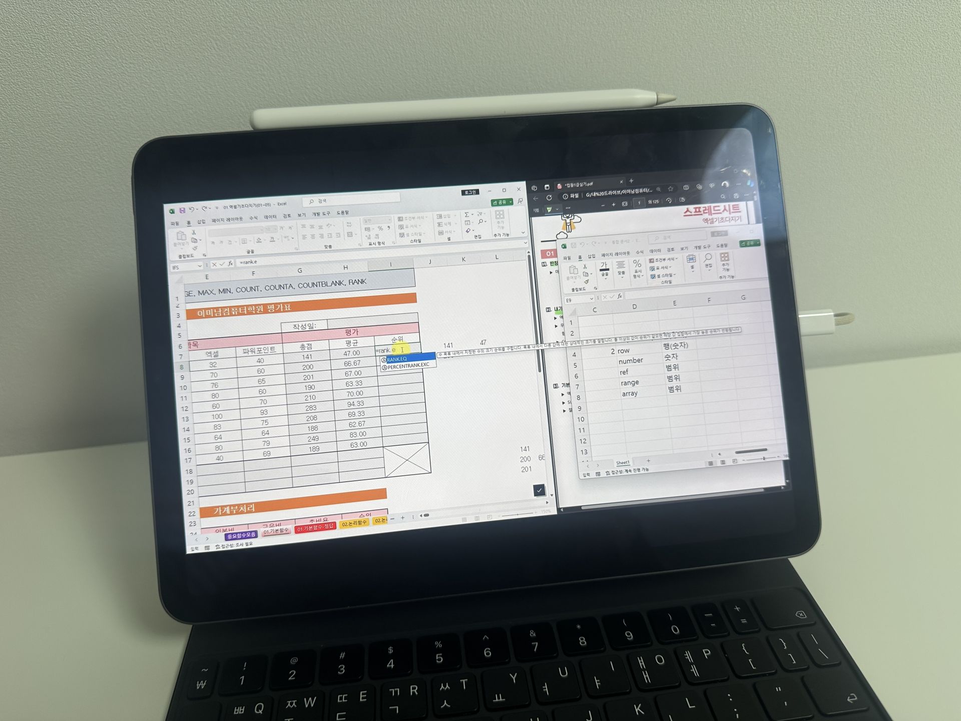 확실히 실기 문제를 먼저 풀어보고 필기를 시작하니까 엑셀 이해도가 올라갔고 워크시트 관련 문제는 쉬웠던거같아요.