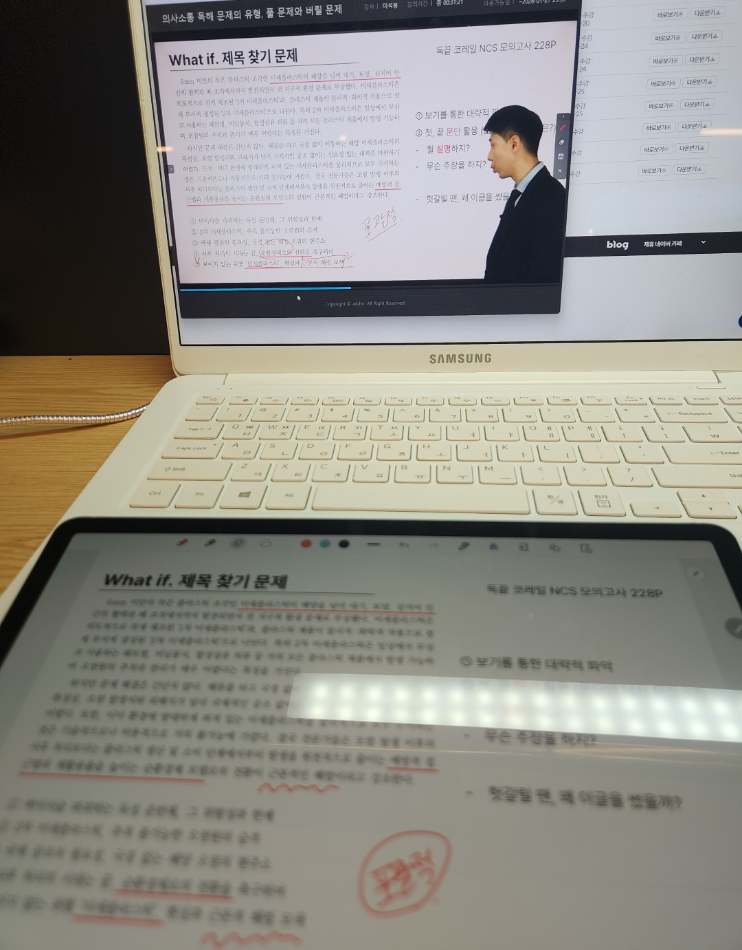 문제를 풀고 인강을 들으면서 나랑 달랐던 문제풀이 방법, 또는 모르는 문제를 알 수 있어서 그 부분도 좋았어요