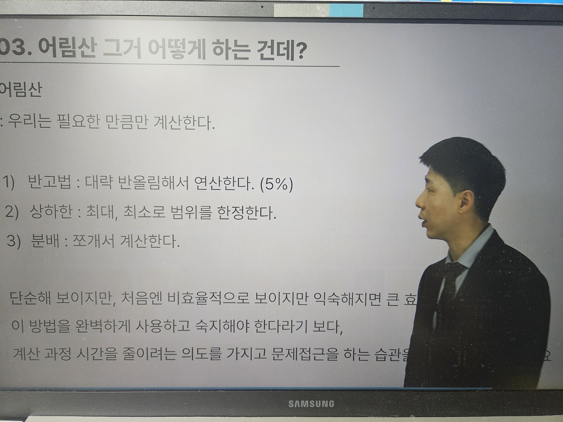 수웅쌤 강의의 가장 큰 장점은 첫째, 실전적인 시간 단축 비법을 전수해주신다는 것입니다. 정석적인 방정식을 써서 길게 계산하는 방식이 아니라 대입법, 가감법, ⭐️몰아주기, 간소화⭐️등 강의를 들은 사람만 아는 꿀팁들을 가르쳐주십니다. 특히 몰아주기와 간소화 기법을 체화하면 복잡한 수치도 암산으로 처리할 수 있을 만큼 계산이 단순해집니다.