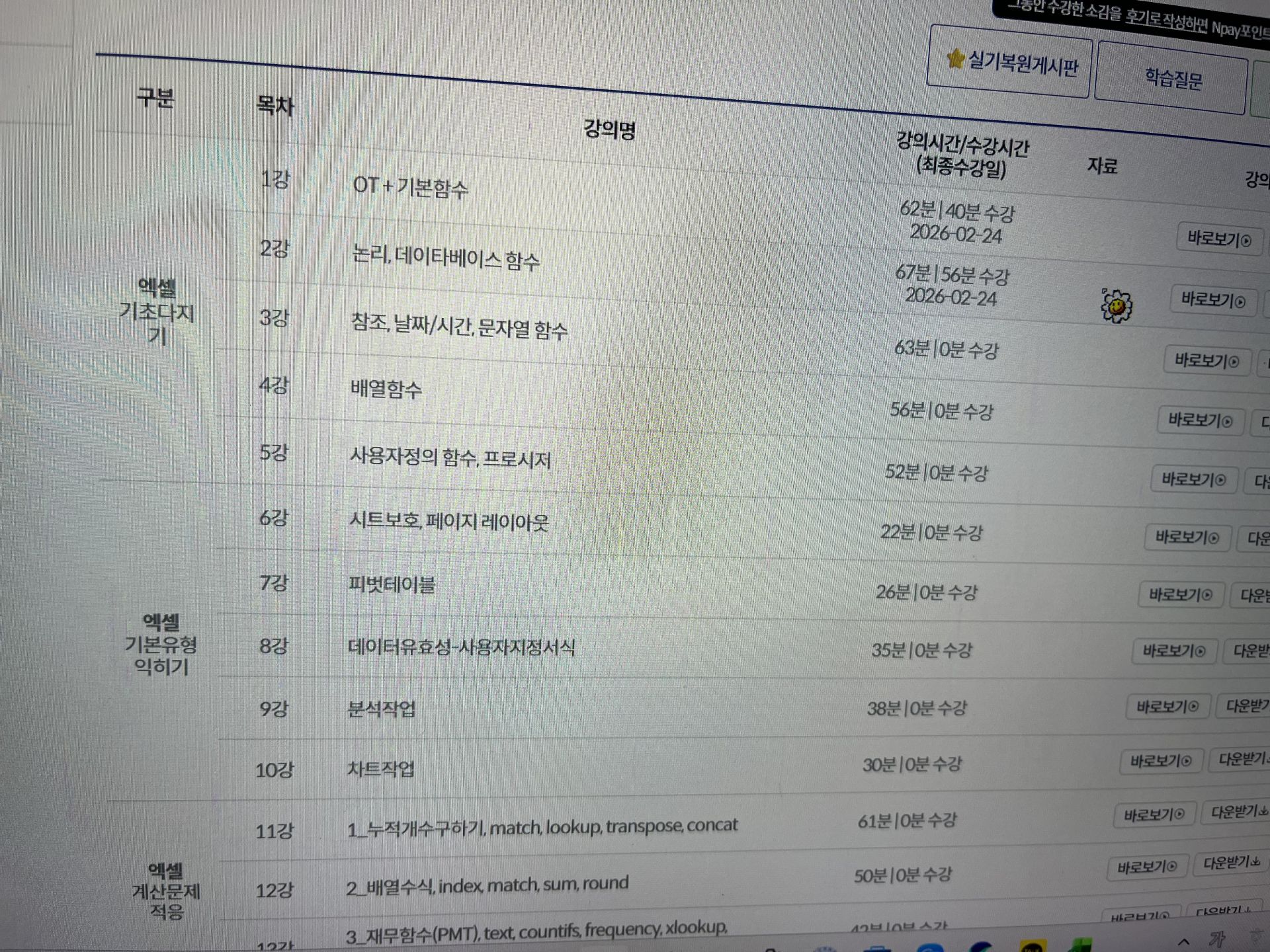 전 엑셀 정말 아무것도 몰라서 수강하기 전까지는 걱정이 한가득이었는데 강의 들을 수 있는 기간도 넉넉하고 정지할 수있고, 온라인 교재 파일도 무료 배포해서 부담없이 공부를 시작할 수 있었어요~!