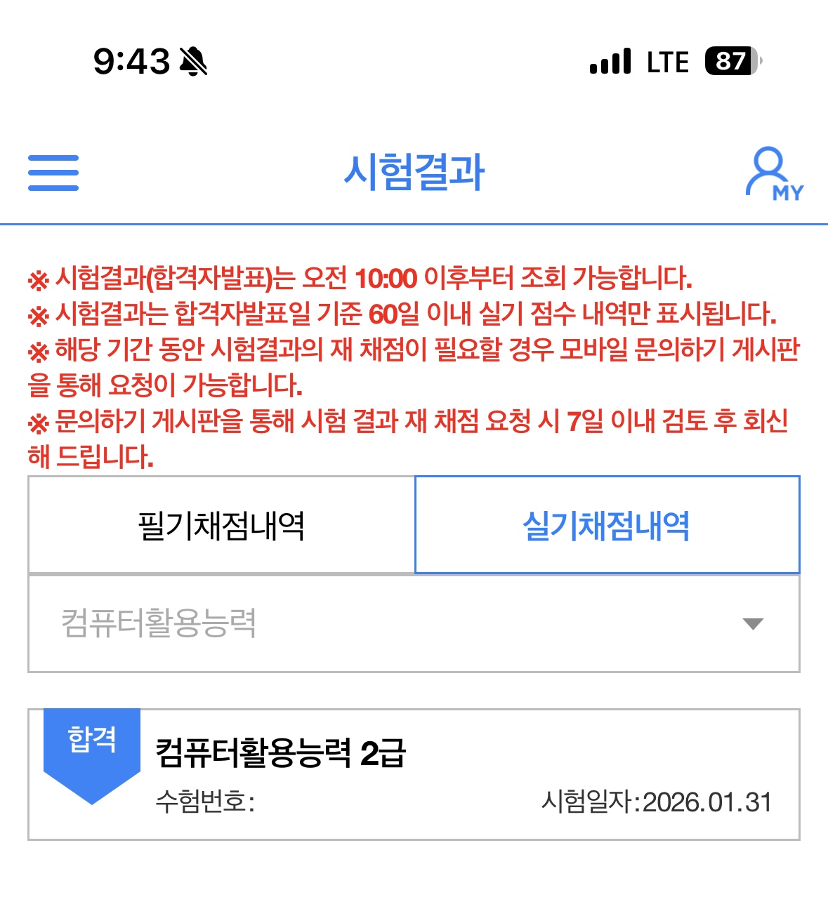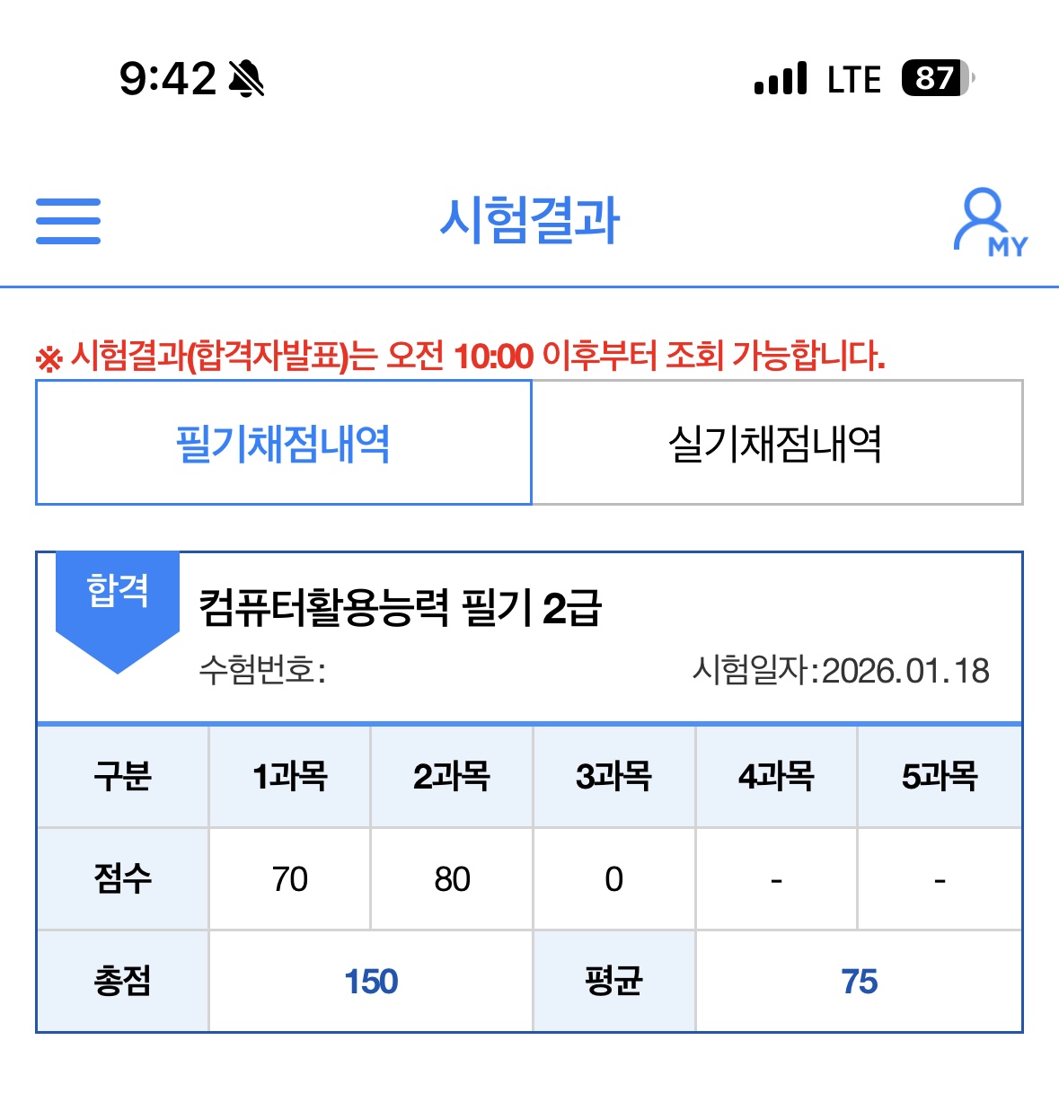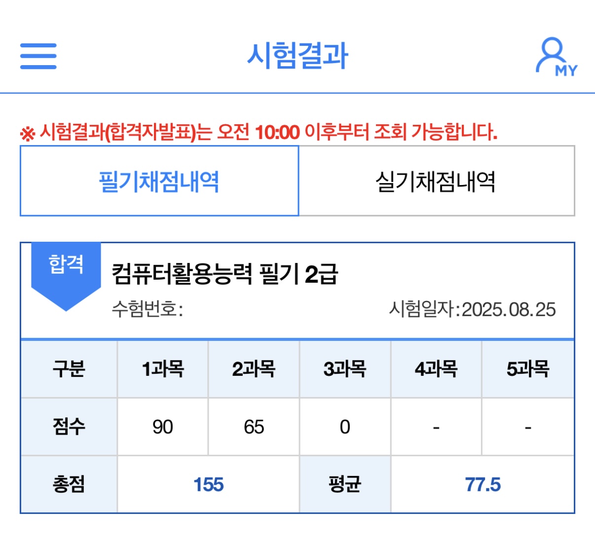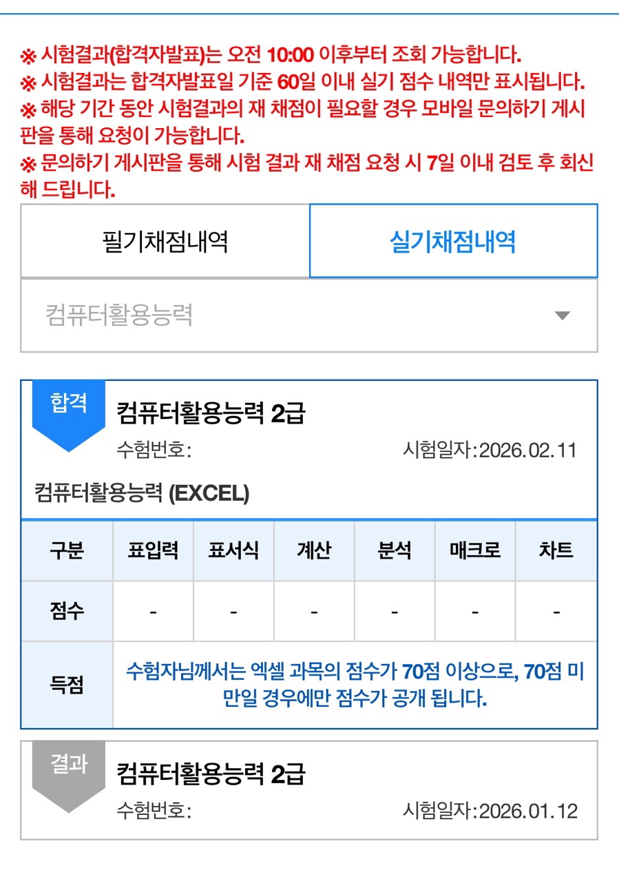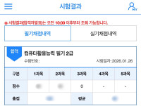 시험 당일에는 긴장도 되었지만, 그동안 연습했던 문제 유형이 많이 나와서 비교적 침착하게 풀 수 있었습니다. 모든 문제를 완벽하게 풀었다는 느낌은 아니었지만, 그래도 합격선까지는 확실하게 결과를 얻을 수 있었습니다.