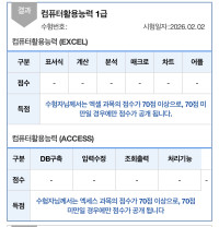 본 시험에서 함수 계산 문제, 조건부 서식 문제 총 두문제를 아예 못 풀었지만 나머지는 열심히 풀어서 합격할 수 있었어요.