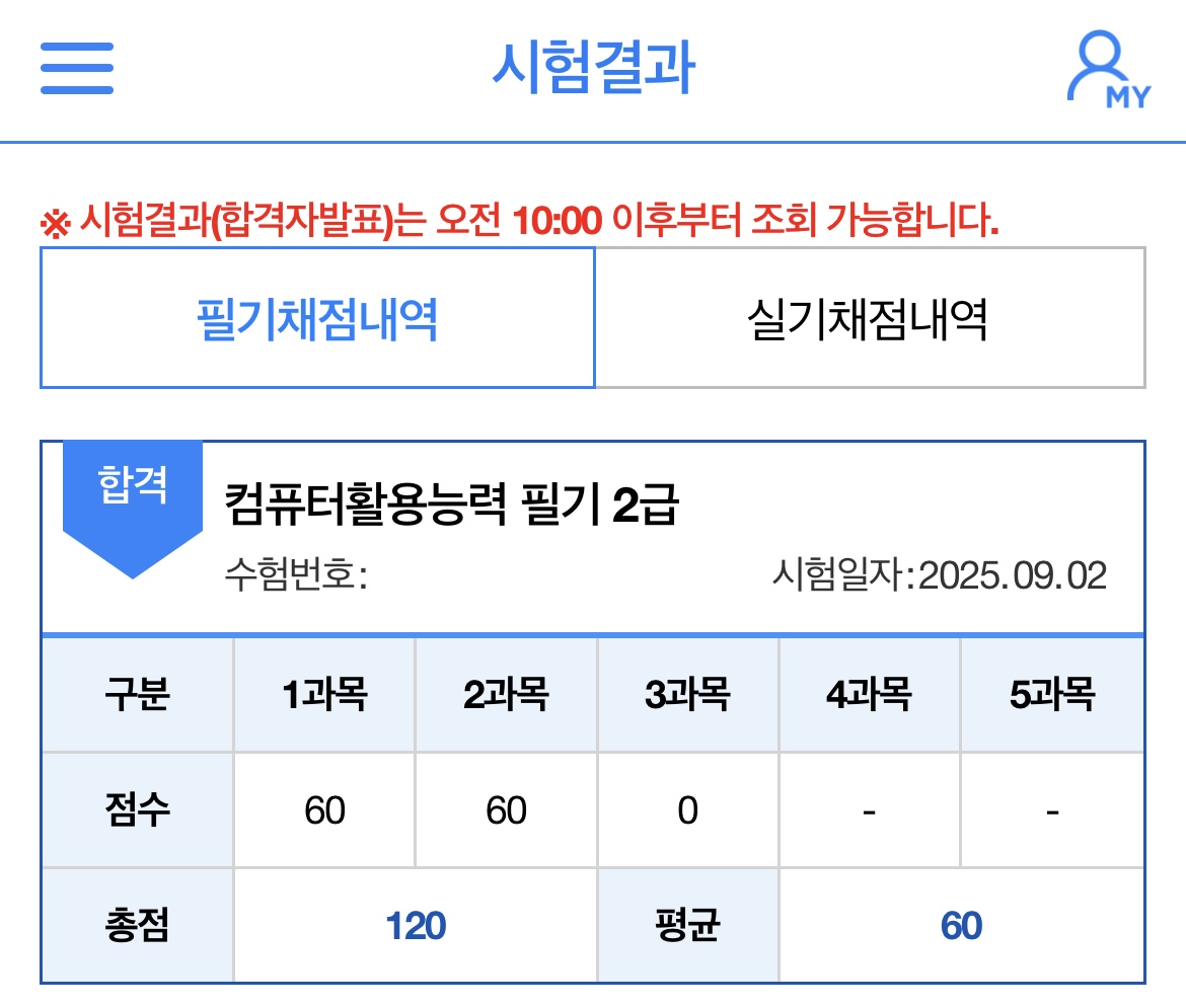 8월 29일 컴활 필기시험에 합격했답니다 ㅎㅎ