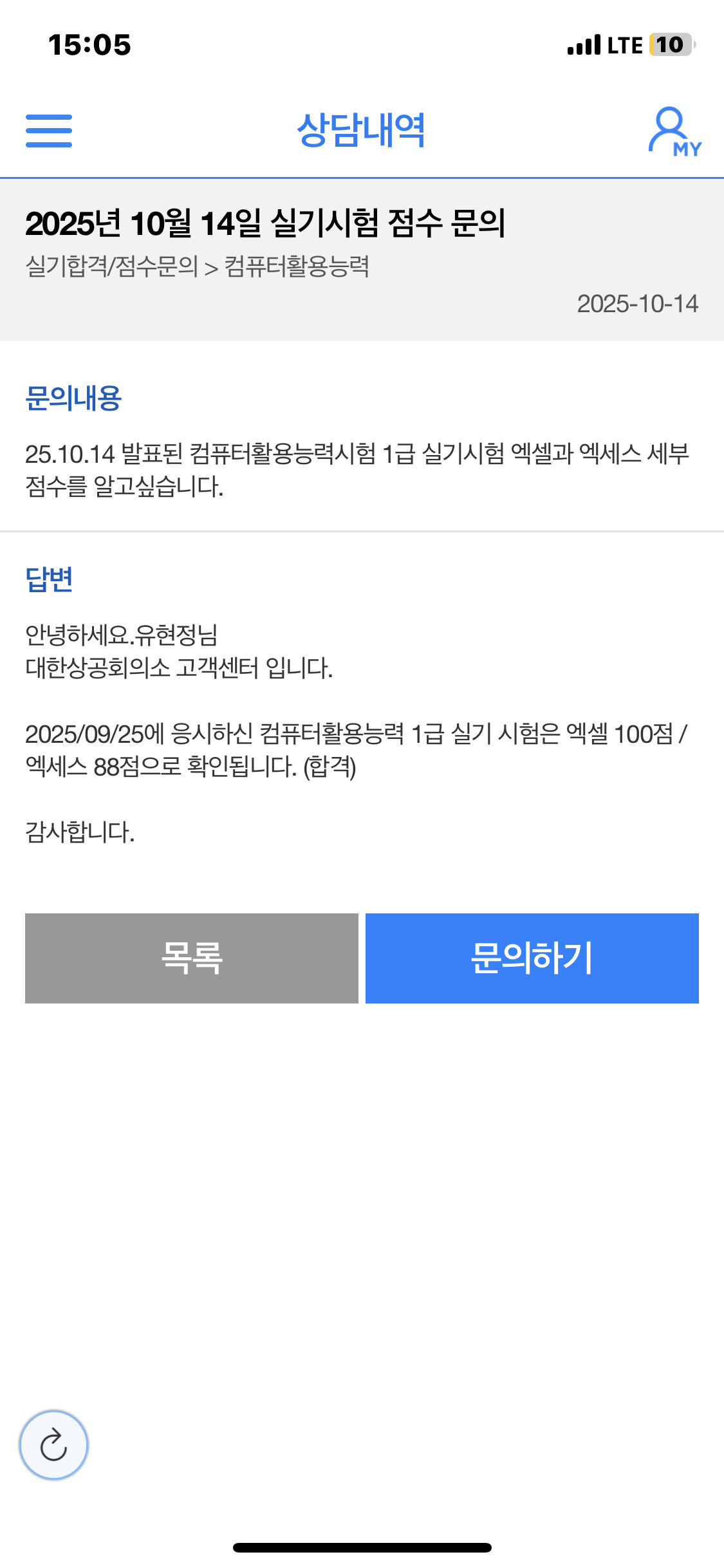 URL복사 링크가 복사되었습니다.nave**** / 2026-01-22 #커리큘럼이 좋아요 #초보자 추천 #포인트를 잘 짚어줘요 #이해가 잘돼요 #따라가기 좋아요 #친절해요 #딕션이 좋아요 #적절해요 #필기+실기 내돈내산! 컴활 1급 필기 실기 합격 후기!