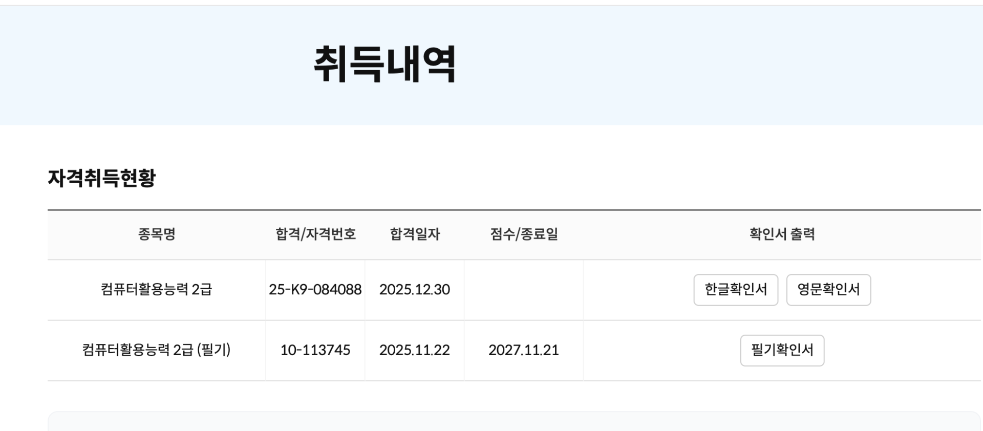 자격증 취득 현황
