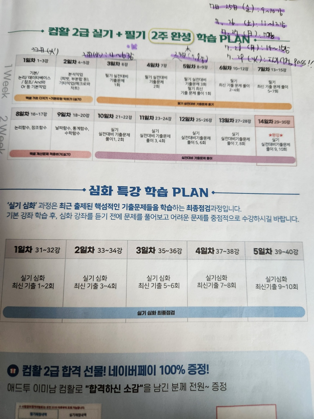 애드투 이미남 컴활2급 교재구매 및 필기+실기 100%환급형을 신청해서 2025년 7월 공부를 시작하였습니다.