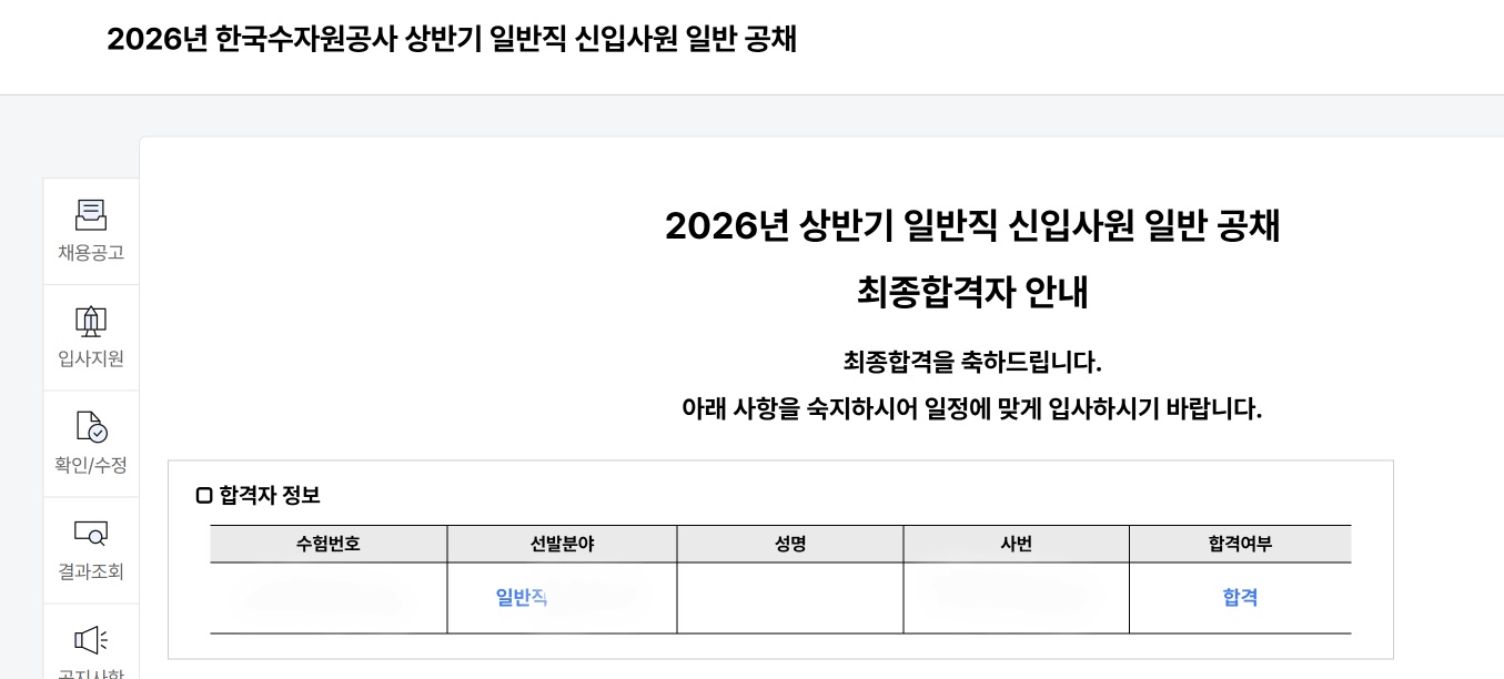 안녕하세요. 이번 한국수자원공사 상반기 채용에서 최종 합격의 기쁨을 누리게 된 합격생입니다.