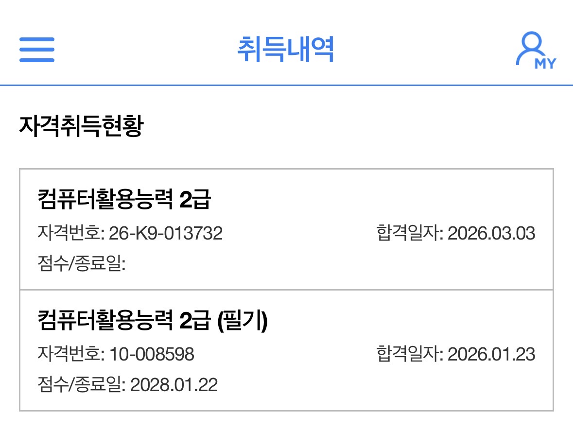 2026년 새해를 맞이하며 컴활 인강을 신청했어요 ! 평소 자기개발에 관심이 많았는데, 특히 자격증 취득에 있어서는 하나씩 취득할 때마다 성취감이 배로 들어 기분이 좋더라구요 :)