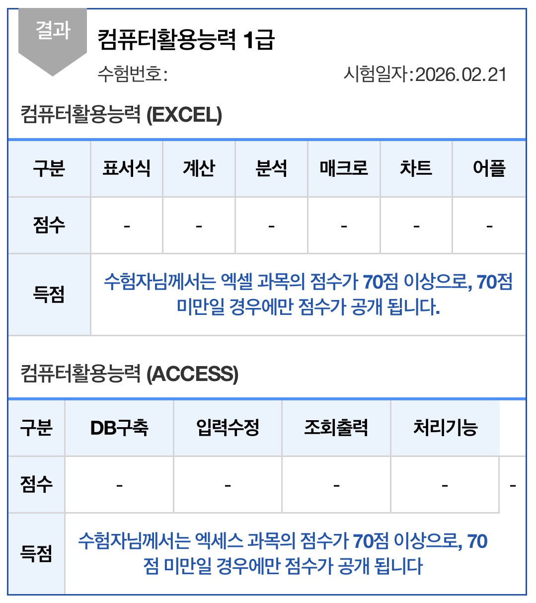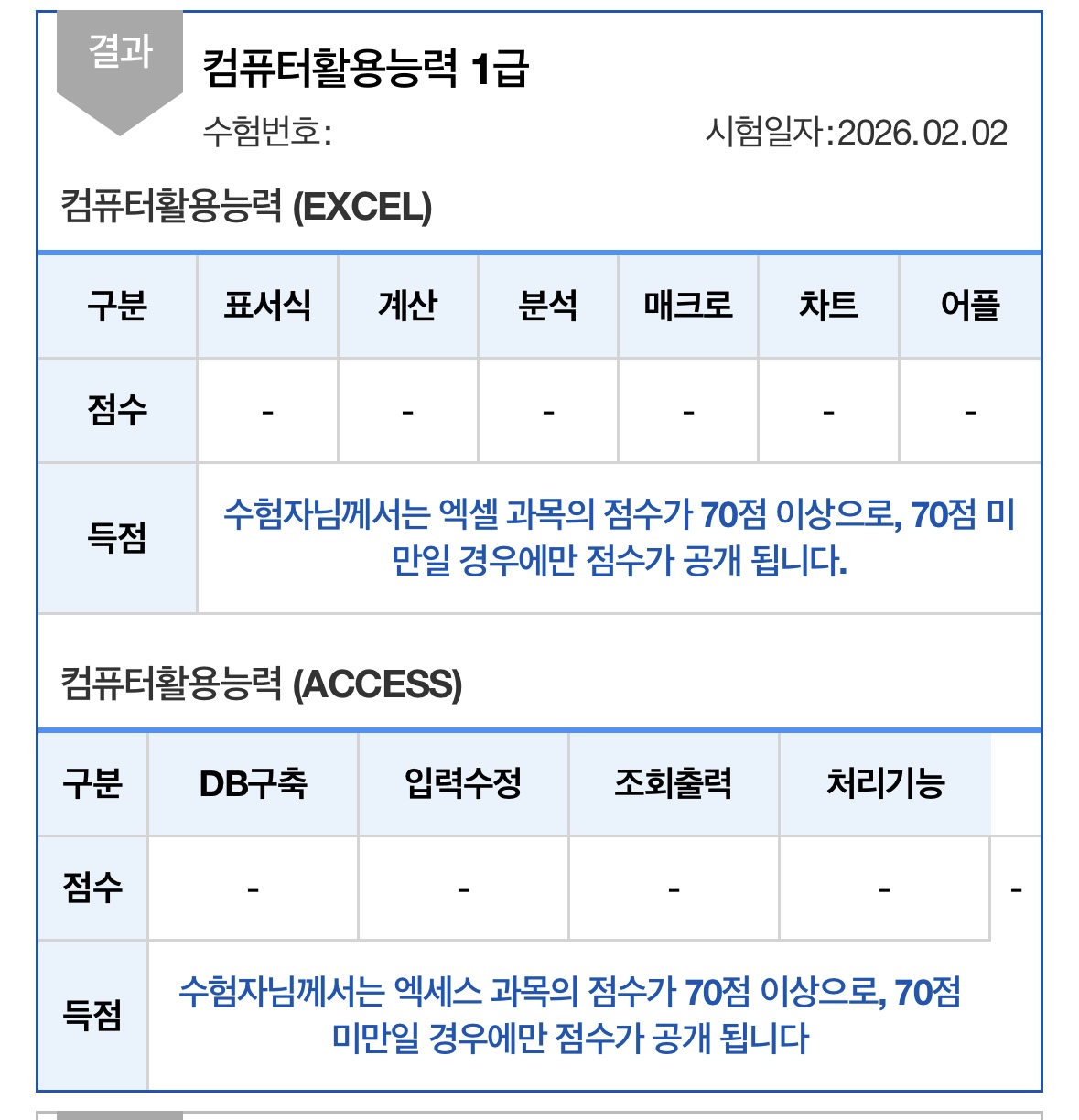 컴퓨터활용능력 1급 실기는 분명 쉽지 않은 시험이지만, 반복적인 연습과 기출 문제 풀이를 통해 충분히 합격할 수 있는 시험이라고 생각합니다. 처음에는 어려워 보이더라도 꾸준히 연습하다 보면 점점 익숙해지고 실력이 쌓이는 것을 느낄 수 있습니다. 저 역시 그 과정을 통해 합격할 수 있었기 때문에, 앞으로 시험을 준비하는 분들도 끝까지 포기하지 않고 꾸준히 도전하셨으면 좋겠습니다. -